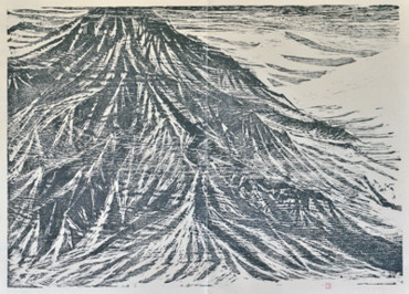 | 私の木版画は「木」に大きなウェートがかかっている。版木として使う「木」は、合板も含めていろいろある。種類や状態を自在に使えたらと思う。私にとって摺れるものであればどんなものでもそれなりに使ってみたい。私の木版画の中には、最初から「この木(板)」を生かすためにモチーフを後から考えたものが沢山ある。通常はモチーフやテーマがあって、それにあった「木(板)」を選んで制作する手順だけど、この場合でもたまたま選んだ「木」にその「木」なりの表情を出してもらいたいと思う。木版画を始めた最初の頃は刀で板を「切る」「彫る」と思っていたし、ただ単なる材料でしかなかった。自分の絵の表現を無理をしてもやろうと思い、出来ないのは技術のないためと思っていた。 しかしやっぱり無理がある。木は逆えば遣うほどあばれる。どうせあばれるものならこれを使わない手はない。これはおもしろそうだ。ただ相手はなかなか手強い。私の受け留められる範囲が狭くて、とても自在とはいかない。 | 単に「木に彫って紙に摺れば木版画だ」と思って始めた。今もそう思っている。だから「手で描いた線」ではなく木と刀がからみあって出来た線、形は木の質や木目とあいまって決まってくる。もっと広く個々の木の持っているものを受け留め、引き出せたら一層楽しめる。 私の木版画の場合、作り手が手を下した(彫った)部分より、残した部分の方が多くのことをいう。この残した部分とはもとからその木が持っていたものであり、作り手が作りあげたものではなく、作り手はそれを損なわれない様に残す作業をしただけとも言える。 それなら私の感じる一番いい状態で残せばいい、それも変に強調し過ぎる事なく。 次にこの木(版木)を墨などを使い紙に摺る。版画は油絵などと違い苦労して作案したそのものではなく、それから「摺りとったもの」が作品として人前にでる。これがいい。苦労の後が見苦しく出がちな私にとって、とても都合がいい。 |